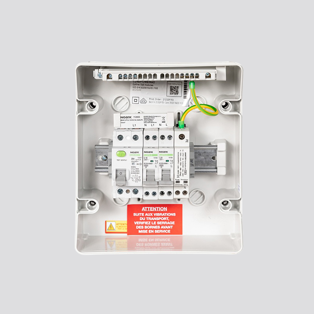 Ce modèle intègre un interrupteur différentiel, une protection parafoudre et un disjoncteur de ligne, garantissant la sécurité et la conformité selon la norme UTE C 15-712-1.